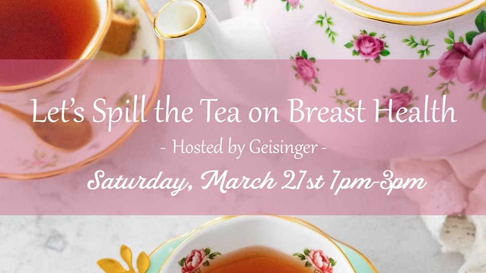 Join PBCC County Captains at this relaxing afternoon tea as Geisinger’s Breast Experts share essential information about breast health — including prevention, understanding your risk and the care options available at Geisinger’s NAPBC-accredited Comprehensive Breast Centers, the only centers in the region with this national quality distinction.