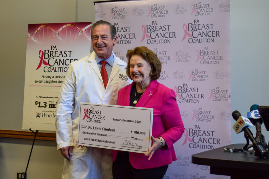 The PA Breast Cancer Coalition (PBCC) recently presented two $100,000 grants to breast cancer researchers at the University of Pennsylvania Perelman School of Medicine: Lewis Chodosh, M.D., Ph.D., and Christine Edmonds, M.D..