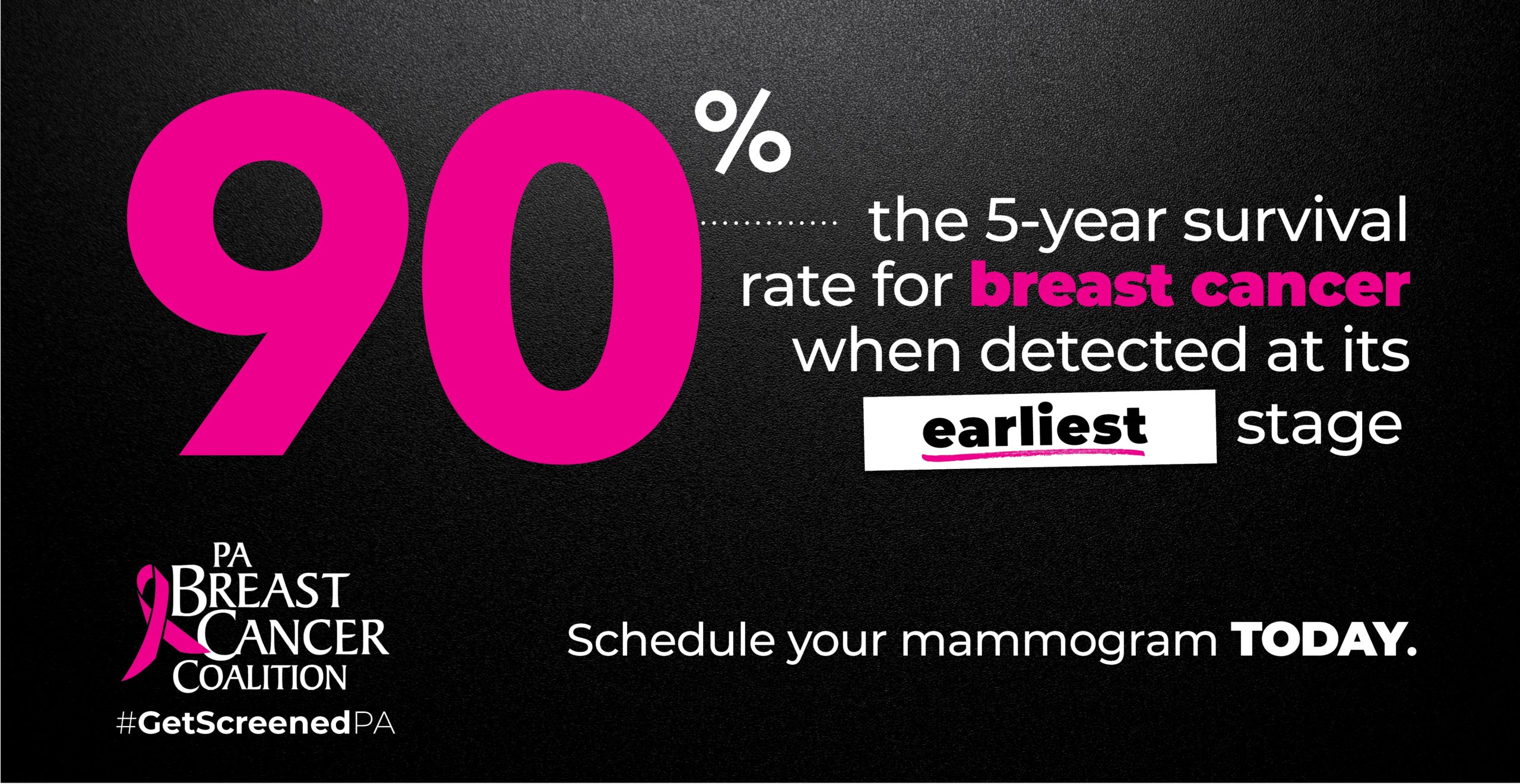 When diagnosed early, the 5-year survival rate for breast cancer is over 90 percent. A missed mammogram could mean a delayed diagnosis of breast cancer!