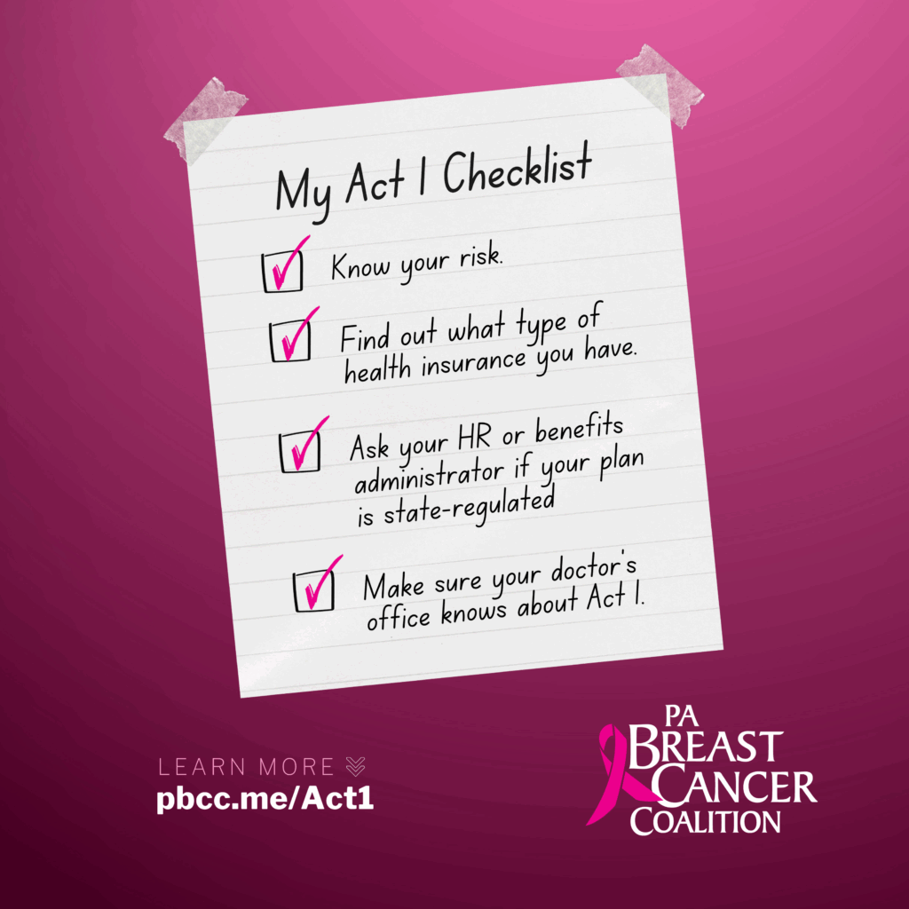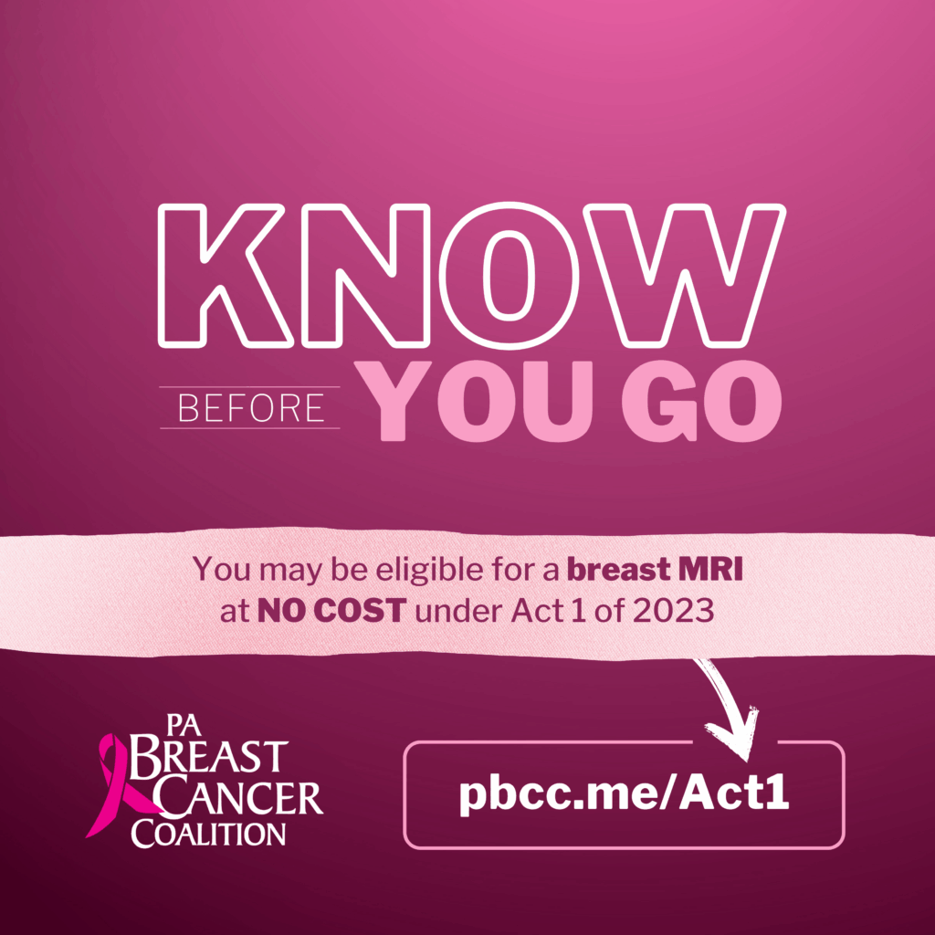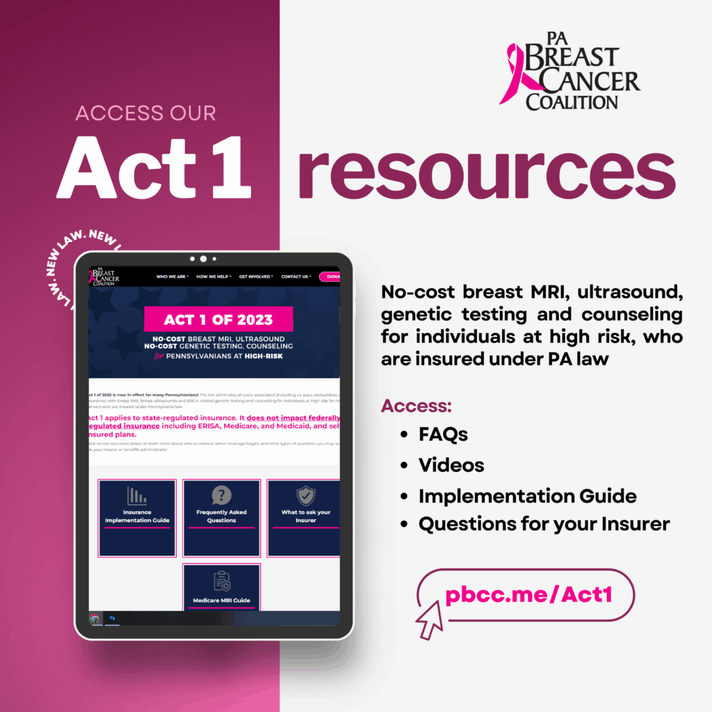 This Breast Cancer Awareness Month, the PA Breast Cancer Coalition encourages all Pennsylvanians to make those two questions a part of everyday conversations. We hope you will take action with us by reminding the women in your life to schedule annual breast cancer screenings and identify their risk for breast cancer. Thanks to the passage of Act 1 of 2023, individuals at high risk with state-regulated insurance have access to no-cost breast MRI, ultrasound, and BRCA-related genetic testing and counseling.