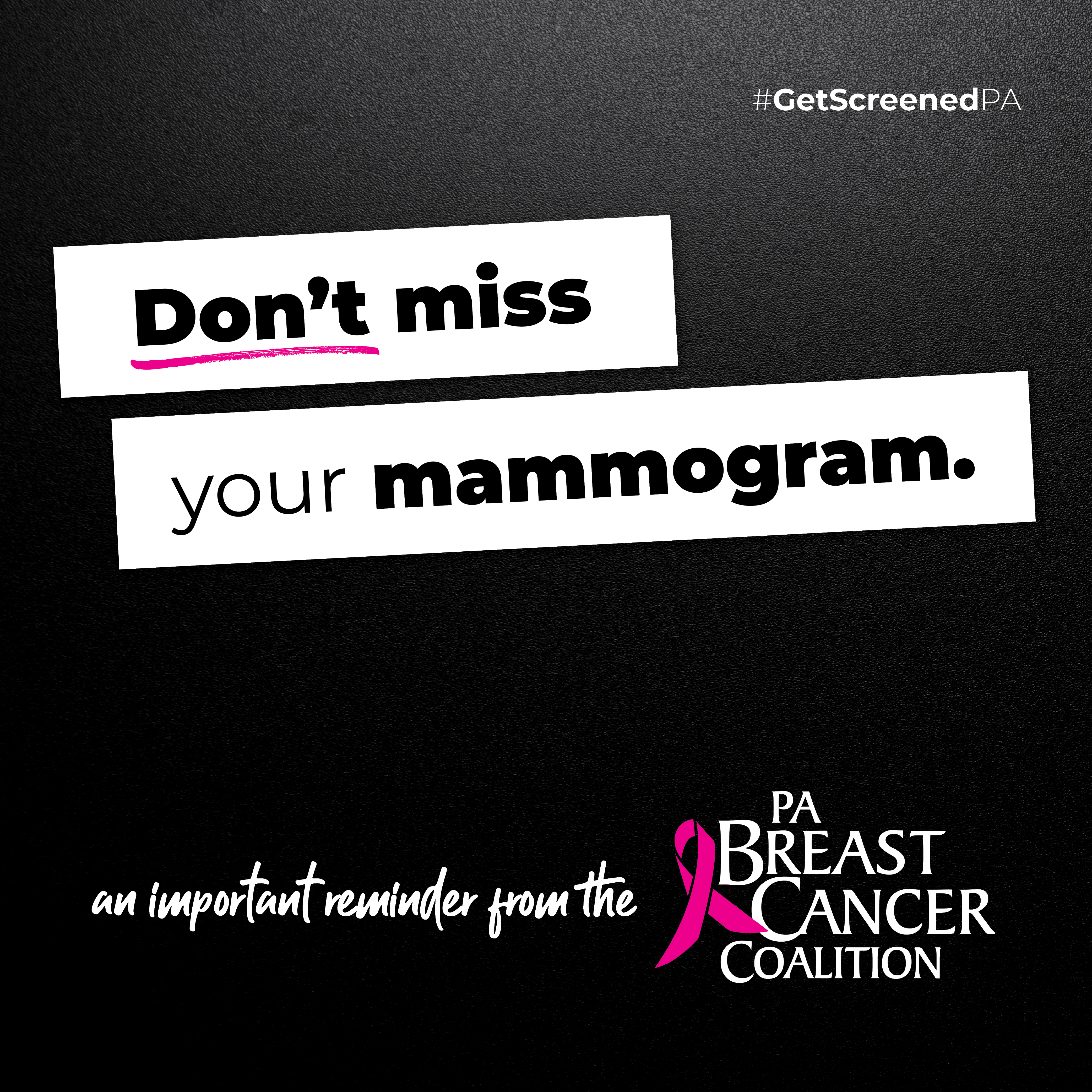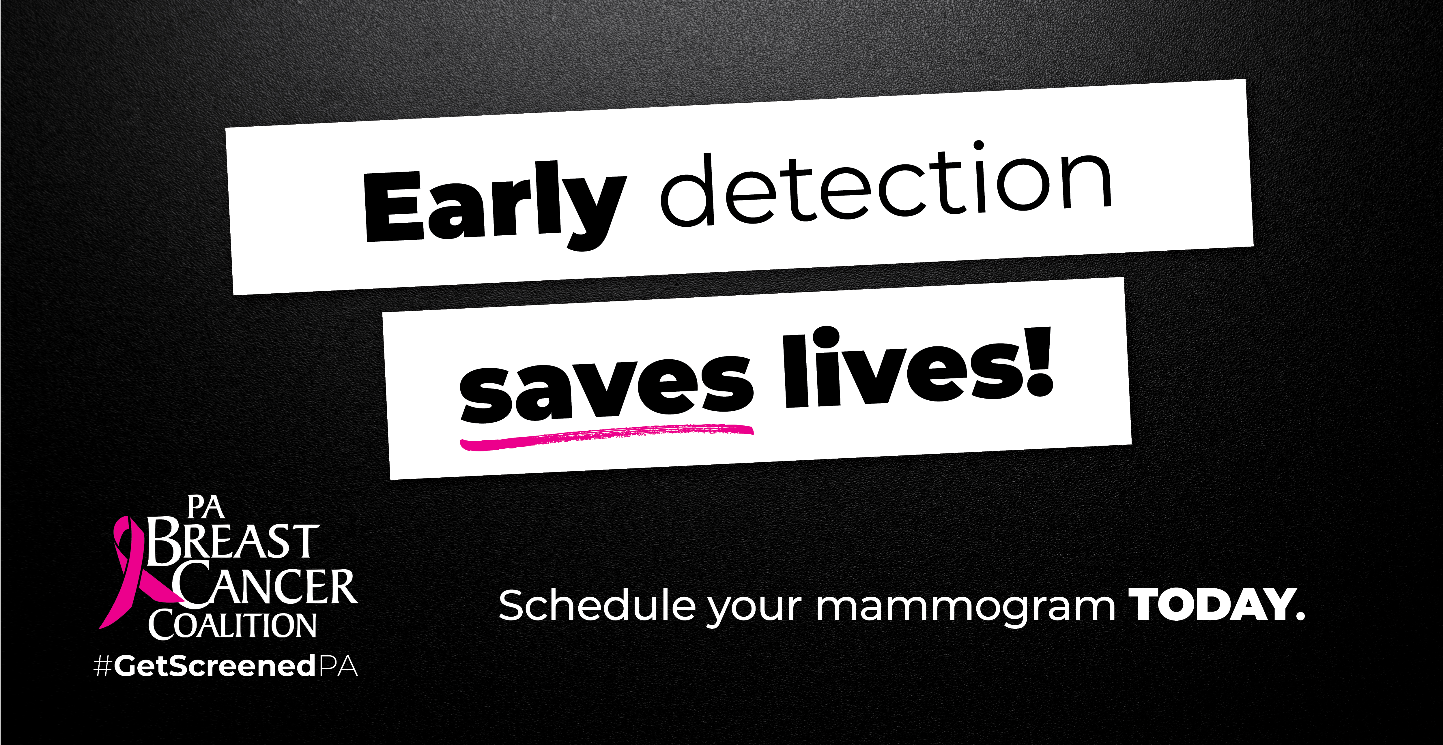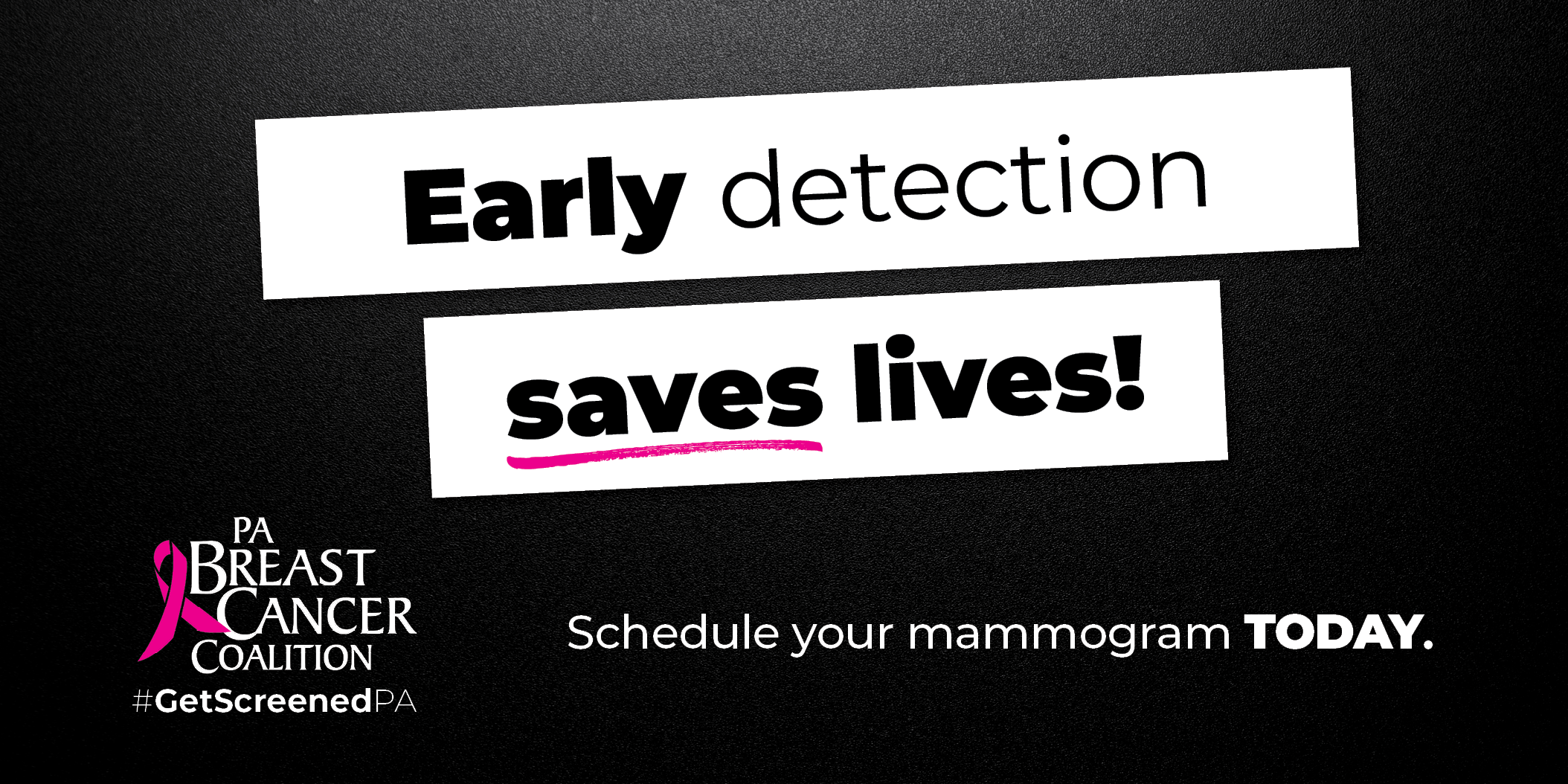– Find a graphic from our toolkit that speaks to you and download it! Add your post and start making a difference. If your post reaches even 1 woman who schedules her mammogram, you made an impact. - Use hashtags #KnowYourRisk, #EarlyDetectionSavesLives or #GetScreenedPA