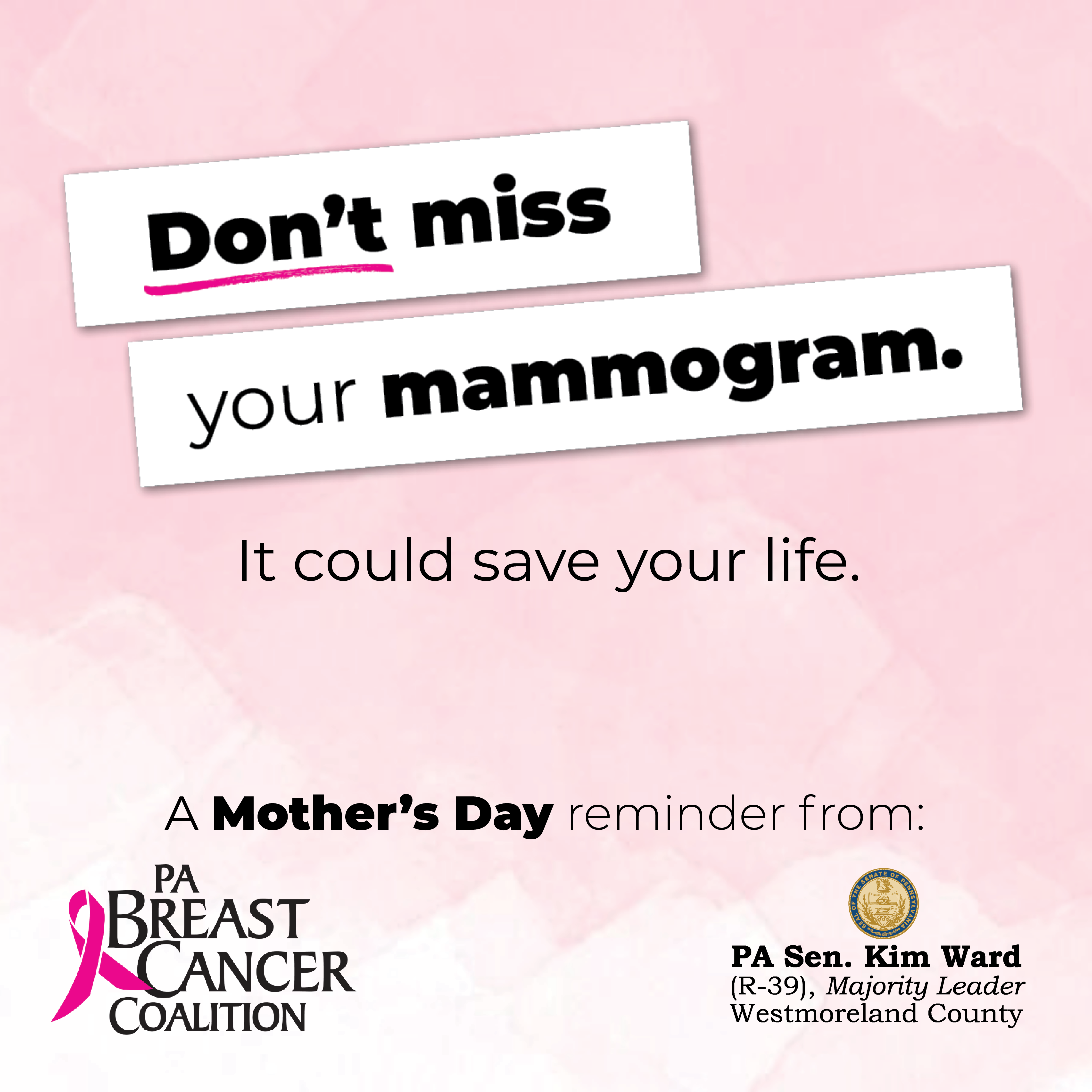 SAMPLE POST 3:Do it for your grandchildren. Join Senate Majority Leader Kim Ward in reminding all women this Mother’s Day to schedule mammograms that could save their lives. #MDM22 | |