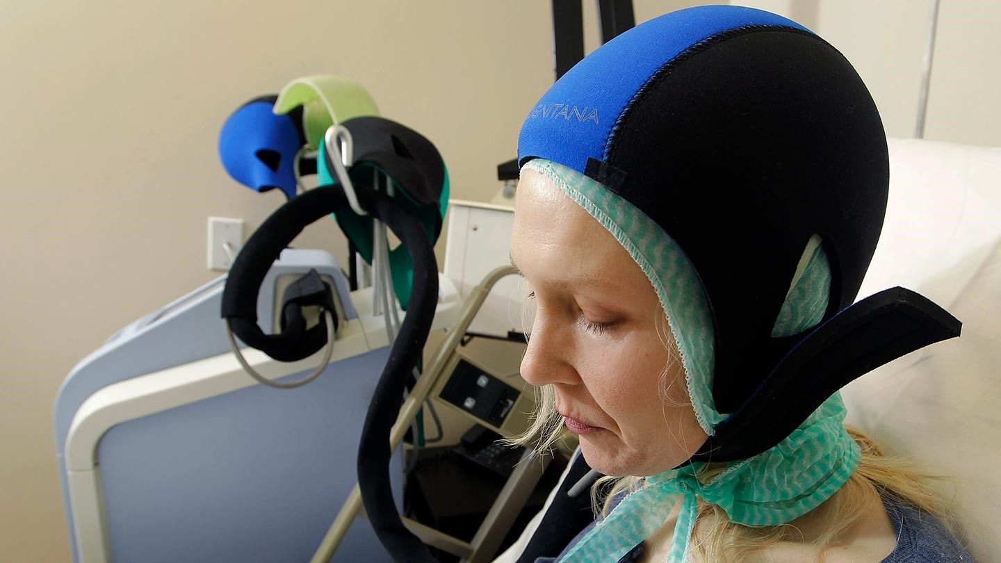 Scalp cooling is a process that minimizes chemotherapy-induced hair loss by continuous application of precisely cooled caps (either individual caps or using an automated scalp-cooling machine) to the scalp beginning just prior to each chemotherapy infusion and continuing during and immediately following the infusion. Currently, most insurance companies do not cover the costs of scalp cooling.