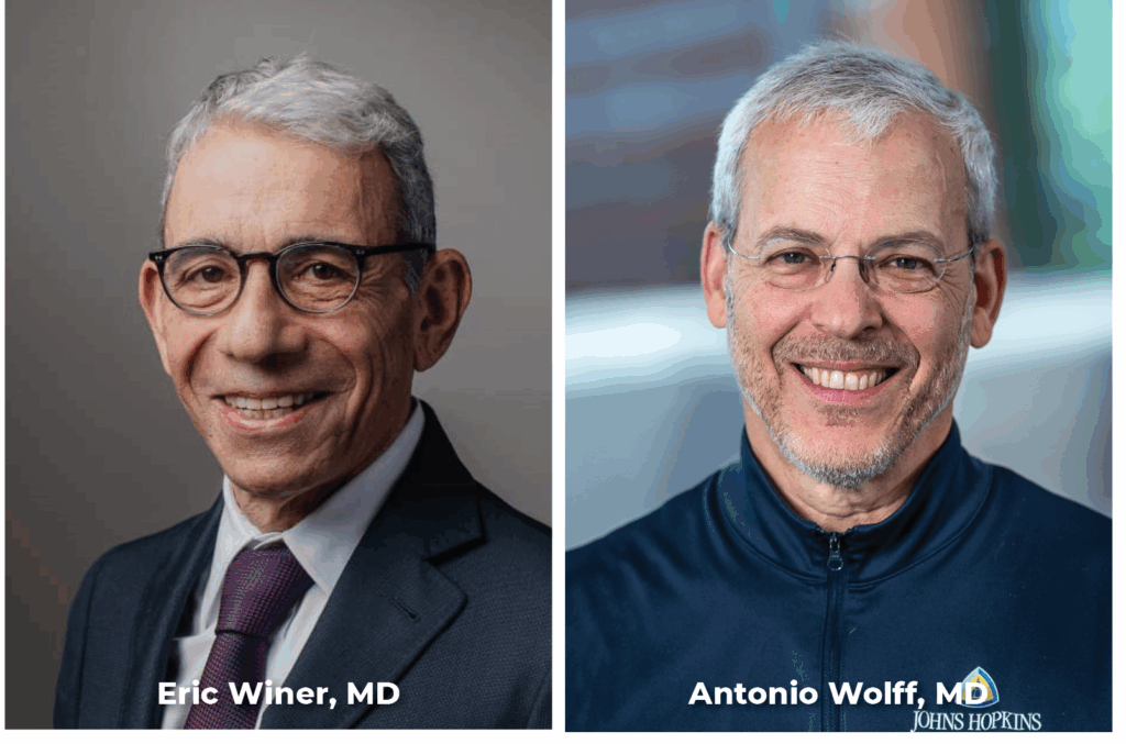 Dr. Eric Winer of Yale Cancer Center and Dr. Antonio Wolff of Johns Hopkins Sidney Kimmel Cancer Center (pictured left) serve as principal investigators of the trials, which will be conducted across 15 institutions in the United States. The goal is to create personalized treatments for patients facing stage IV breast cancer using blood samples, tumor biopsies, high-resolution imaging, and medical records to monitor each patient’s cancer in near real-time. This will allow oncologists and researchers to modify treatment plans as soon as possible if the cancer is not responding.