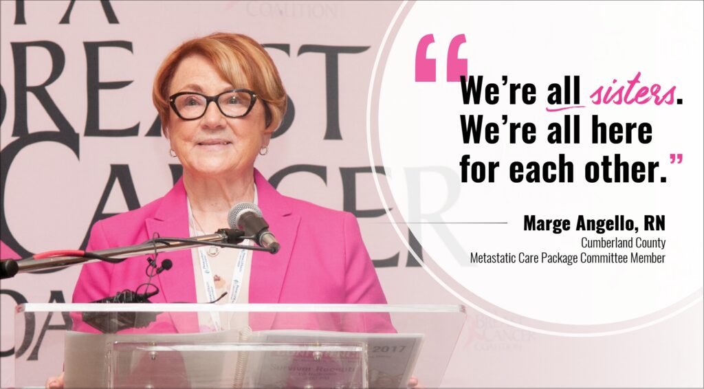 I want other women diagnosed with metastatic breast cancer to know that they can receive assistance, care and kindness from family, friends and the PBCC. We’re all sisters. We are all here for each other. I have had many of my sisters come to visit, call me and want to know how they can help. Truly they have been here for me.