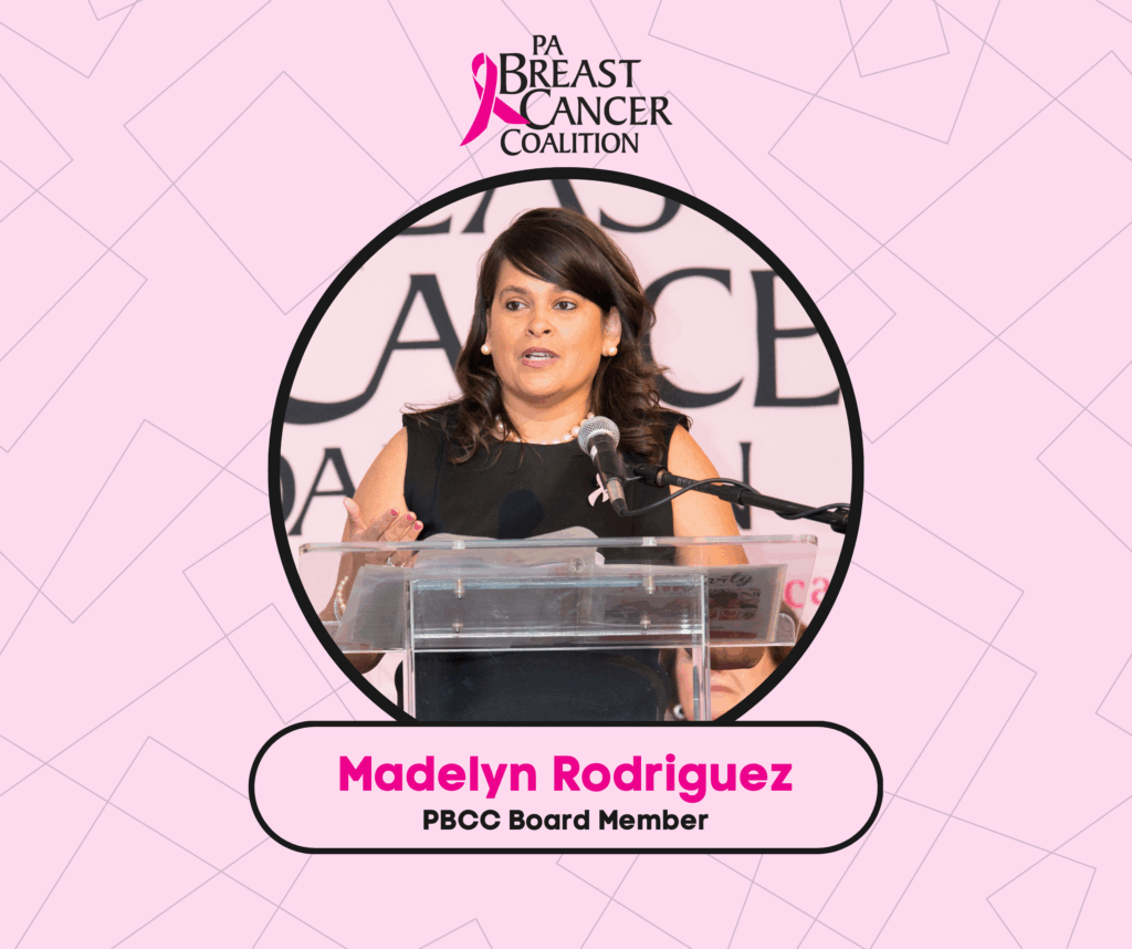 A cause near to her heart, Madelyn Rodriguez supports the mission of the PA Breast Cancer Coalition in many ways: as a Grassroots Partner, Board Member and advocate. Most recently, Rodriguez hosted the PA Breast Cancer Coalition’s photo exhibit on the campus of Commonwealth University of Pennsylvania-Bloomsburg, where she works as Executive Director of Diversity, Equity, and Inclusion. Madelyn is also a longtime Grassroots Partner, organizing the Commonwealth University-Bloomsburg 5K Walk/Run and opens in a new windowFriends Like Me Donation Drives in memory of her mother, who passed away from breast cancer.
